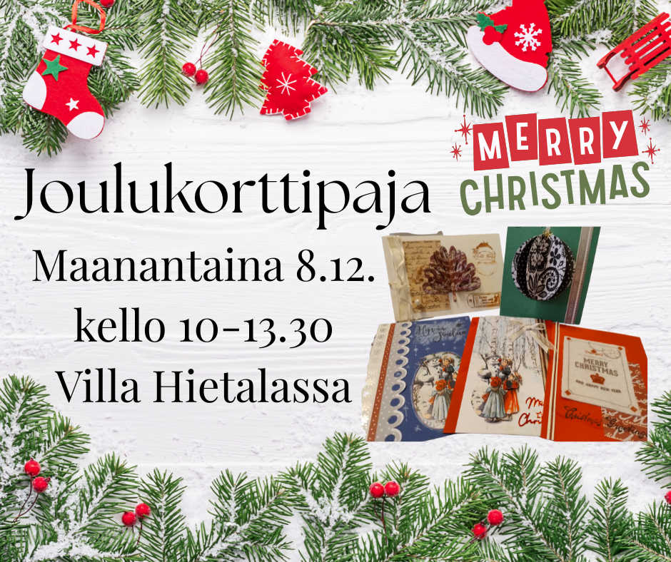 Joulukorttipaja Villa Hietalassa maanantaina 1.12. ja 8.12.2025 kello 10-13.30